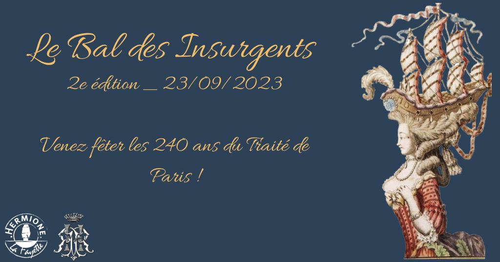 23 septembre 2023: Bal des Insurgents (2e édition). Bal caritatif pour la restauration de la Frégate Hermione. Lien sur la page de notre événement: https://www.facebook.com/events/1062788367710488?ref=newsfeed